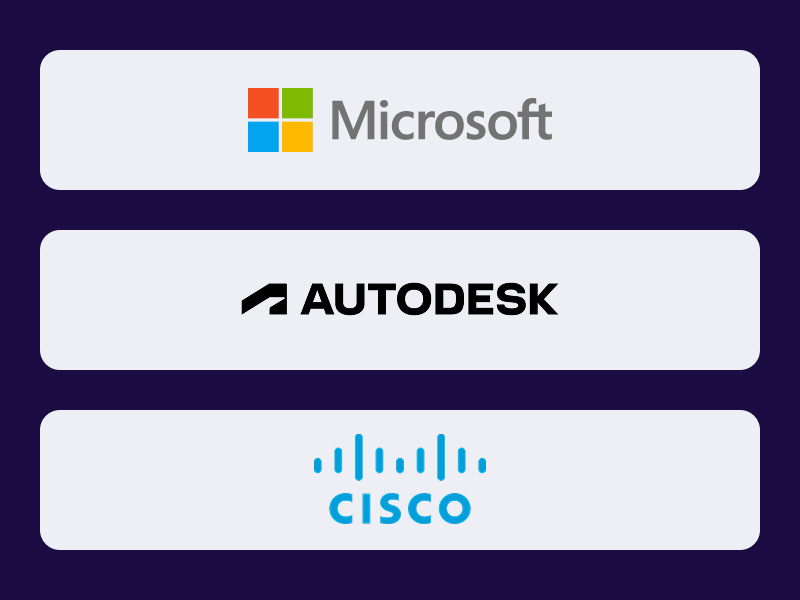 Готовим студентов Академии к прохождению профессиональной сертификации Cisco, Microsoft, Autodesk по профилю обучения. Следим за актуальными требованиями экзаменов, чтобы выпускники могли подтвердить свою квалификацию на международном уровне.от12 358 ₽в месяц